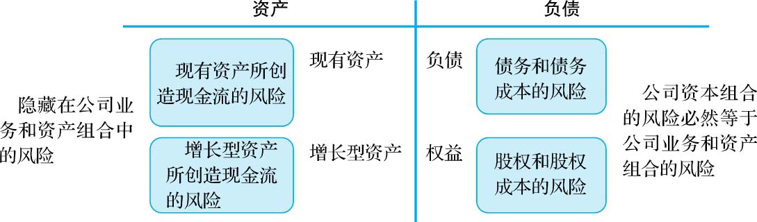 与资产负债表的其他方面一样,风险同样必须实现平衡,也就是说,资产的加权风险必须等于资本各部分(负债和权益)的加权风险。需要提醒的是,在企业中,股权投资的风险部分取决于企业的业务风险,部分依赖于企业选择采用多大比例的债务进行融资。如果公司使用大量债务为业务提供资金,那么持有这家公司的股权就会给投资者带来过大的风险。