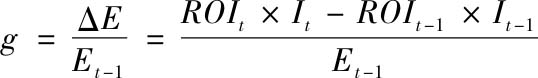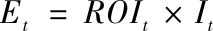 增长的分解 认识盈利增长率最好的方法,就是把它分解成若干组成部分。我们将E t 定义为第t期的收益,I t 代表第t期开始时已完成的全部投资,ROI t 为这些投资的收益率。于是,我们可以将E t 改写为: