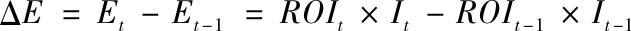 随后,从第t-1期到第t期的收益变动额ΔE,可以表述为如下公式: