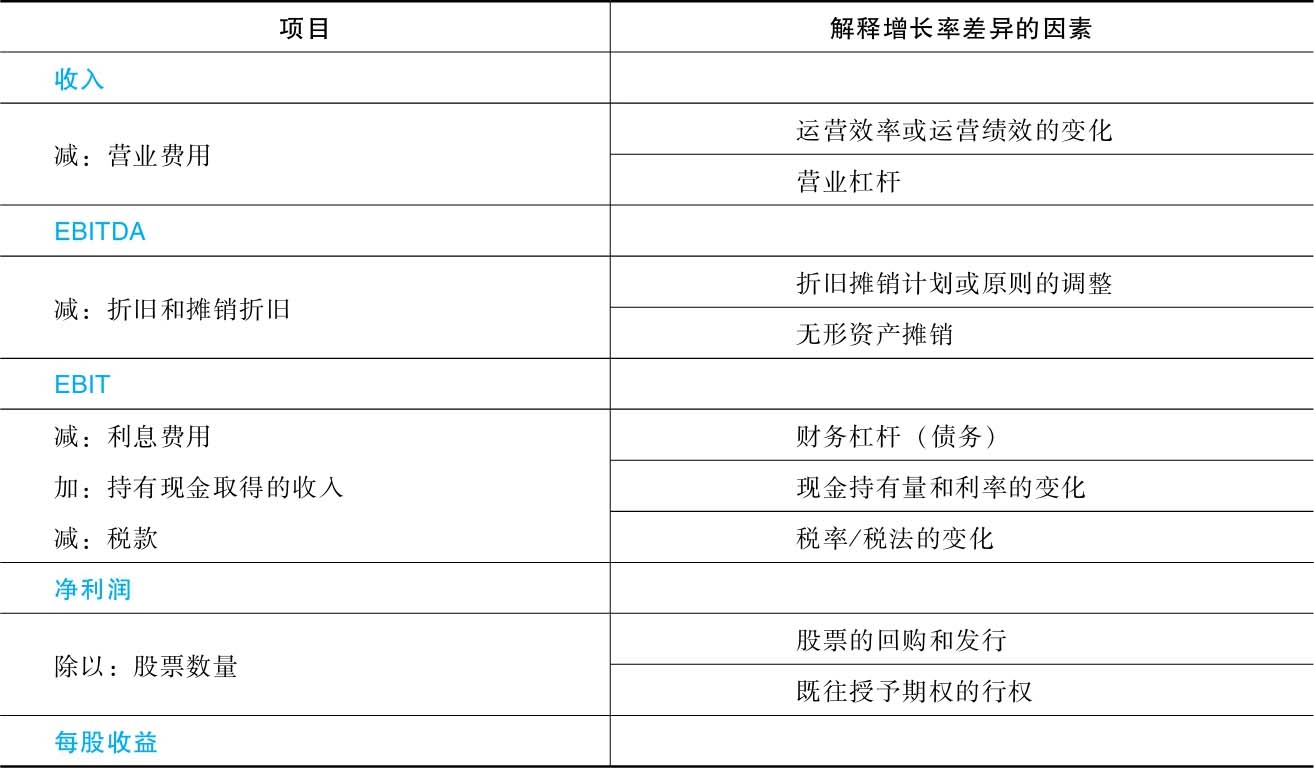实际上,当被问及估计增长率时,分析师首先需要问的问题就是:“哪个项目的增长率?”如果我们的任务是估计营业利润的增长率,那我们就不能使用每股收益的增长率。