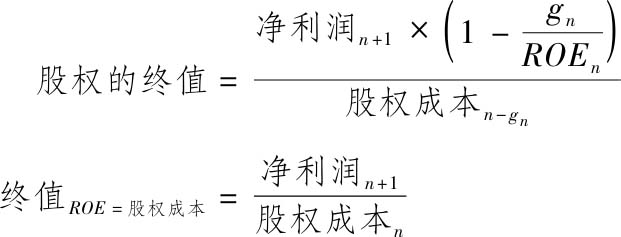 你可以对股权收益率和现金流采用相同的假设,由此可以得到,股权的终值是权益收益率和股权成本之差的函数: