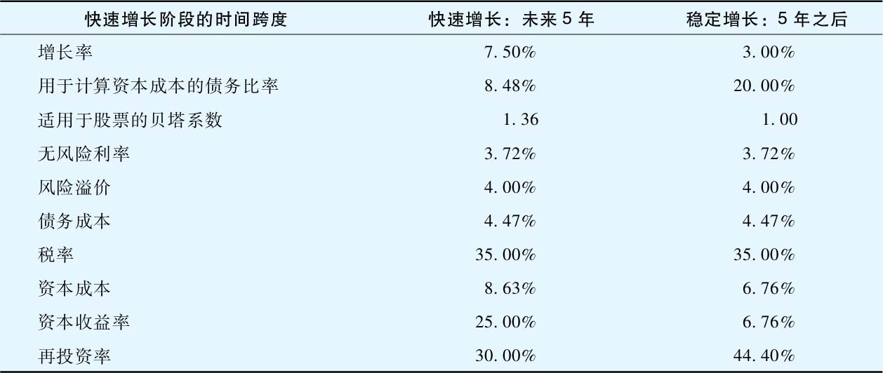 表2-9列出了我们对3M公司在快速增长阶段和稳定增长阶段下做出的假设。