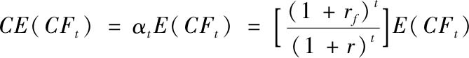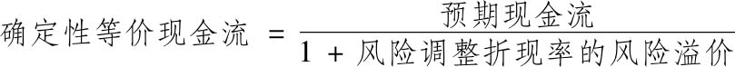 在本节中,我们将要讨论的一个现实问题是:如何最合理地将不确定的预期现金流转换为有保障的确定性等价现金流(certainty equivalent cash flow)。尽管我们不能否认现金流取决于风险规避倾向这个观点,但真正的估算依旧难度很大。