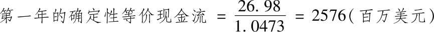 使用这个风险溢价,我们可以计算3M公司在第一年的确定性等价现金流为: