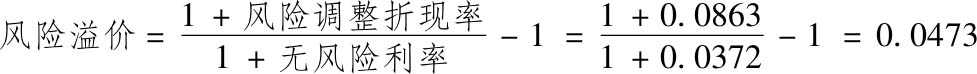 我们可以对所有预期现金流进行上述计算,其中,r代表风险调整后的折现率,r f 代表无风险利率。