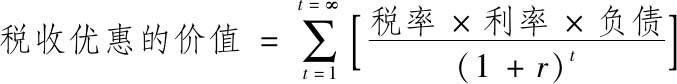 随着这种方法不断改进,允许税率和债务绝对额可变,但以债务成本作为折现率是否合理的问题也逐渐浮出水面。费尔南德斯(Fernandez,2004)认为,税收收益的价值应该是如下两个价值之间的差额,即负债企业在享受税收优惠情况下的价值与同一公司在无杠杆情况下的价值之差。因此,他得到的税收优惠价值远远高于按传统方法得到的结果,两者的比例大于无杠杆企业股权成本与债务成本之比。但库珀和尼博格(Cooper and Nyborg,2006)并不认同费尔南德斯的观点,他们认为,债务税盾的价值是利息节约额按债务成本折现后的现值。