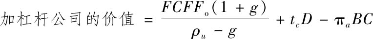 在现值调整法估值中,加杠杆公司的价值等于债务的净效应与无杠杆公司价值之和: