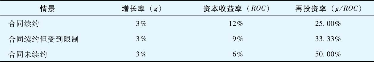 表3-2 资本收益率(ROC)和再投资率——合约情景