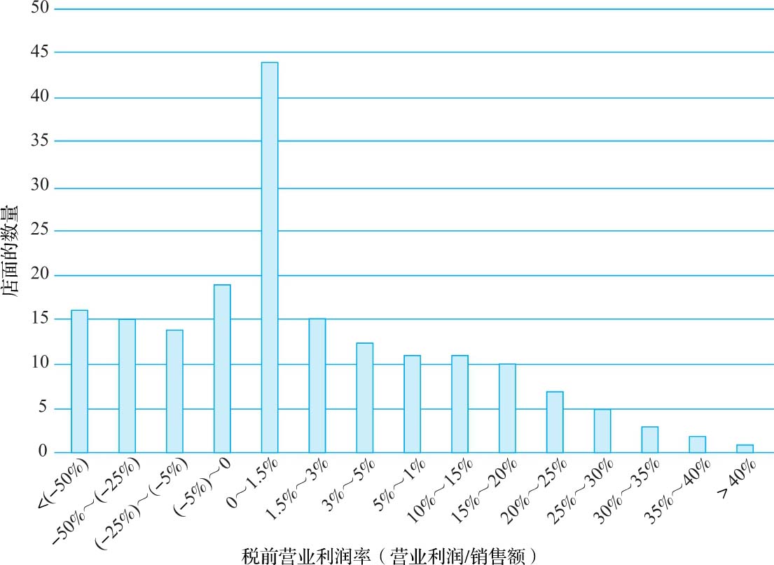 如果采用这种分布,我们实际上就相当于假设所有软件公司营业利润率的基本分布都是相同的。在第二个例子中,假设你就职于零售商塔吉特百货,你的任务是估算新建店面投资的每平方英尺