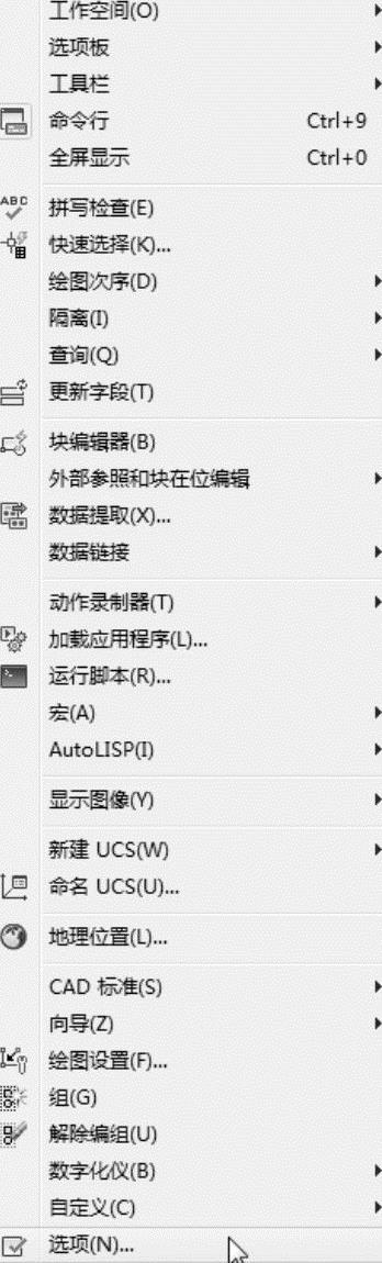 菜单:“工具”→“选项”(其中包括一些最常用的命令,如图2-2所示)。