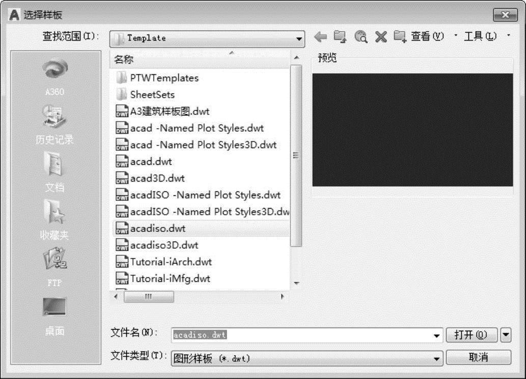 执行上述命令后,系统打开如图2-7所示的“选择样板”对话框,可从对话框中选择图形样板创建新图形。