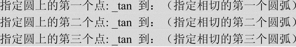 “绘图”→“圆”菜单中多了一种“相切、相切、相切”的方法,当选择此方式时,系统提示如下。