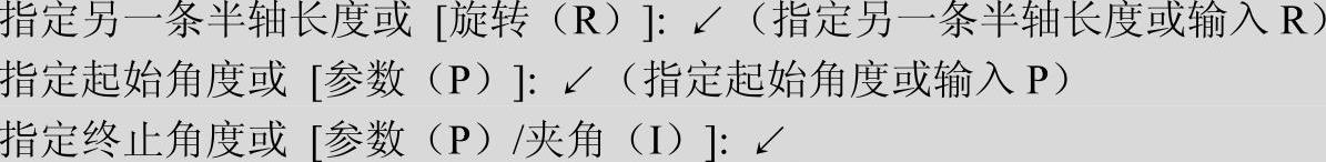 2)参数(P):指定椭圆弧端点的另一种方式,该方式同样是指定椭圆弧端点的角度,通过以下矢量参数方程式创建椭圆弧。