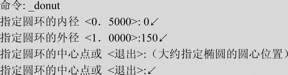 2)单击“默认”选项卡“绘图”面板中的“圆环”按钮 ,绘制实心圆环,命令行提示与操作如下。