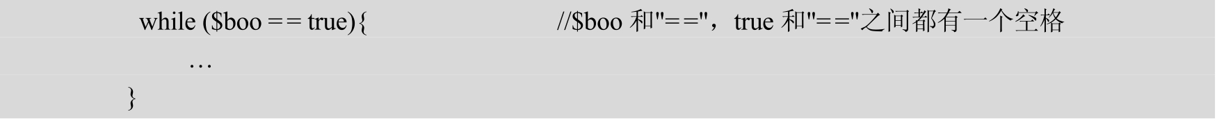 运算符与两边的变量或表达式要有一个空格(字符连接运算符“.”除外)。如: