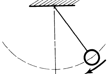 为了说明另一种形式的能量,我们来考虑一个单摆(图4-7)。假如我们把它拉向一边,再把它放开,它就会来回摆动。在这种运动中,每当从端点跑向中点时,它的高度降低了,这时势能跑到哪里去了呢?当摆降到底部时,势能就消失了,不过,它将再次爬上来。可见重力势能必定转变为另一种能量形式。很明显它是依靠了自己的 运动 才能重新爬上来的。所以,当它到达底部时,重力势能就转变为某种其他形式的能量。