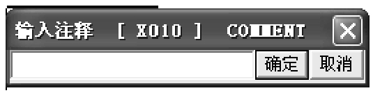 单击“注释编辑”图标,梯形图之间的行距拉开。这时,把光标移到要注释的触点 X010 处,双击光标,出现如图2-20所示“输入注释”对话框。