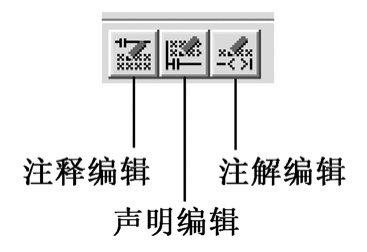 此处仅介绍单击图标方法。工具条上关于注释的图标有3个,表示3种注释内容。3个图标及其名称如图2-18所示。
