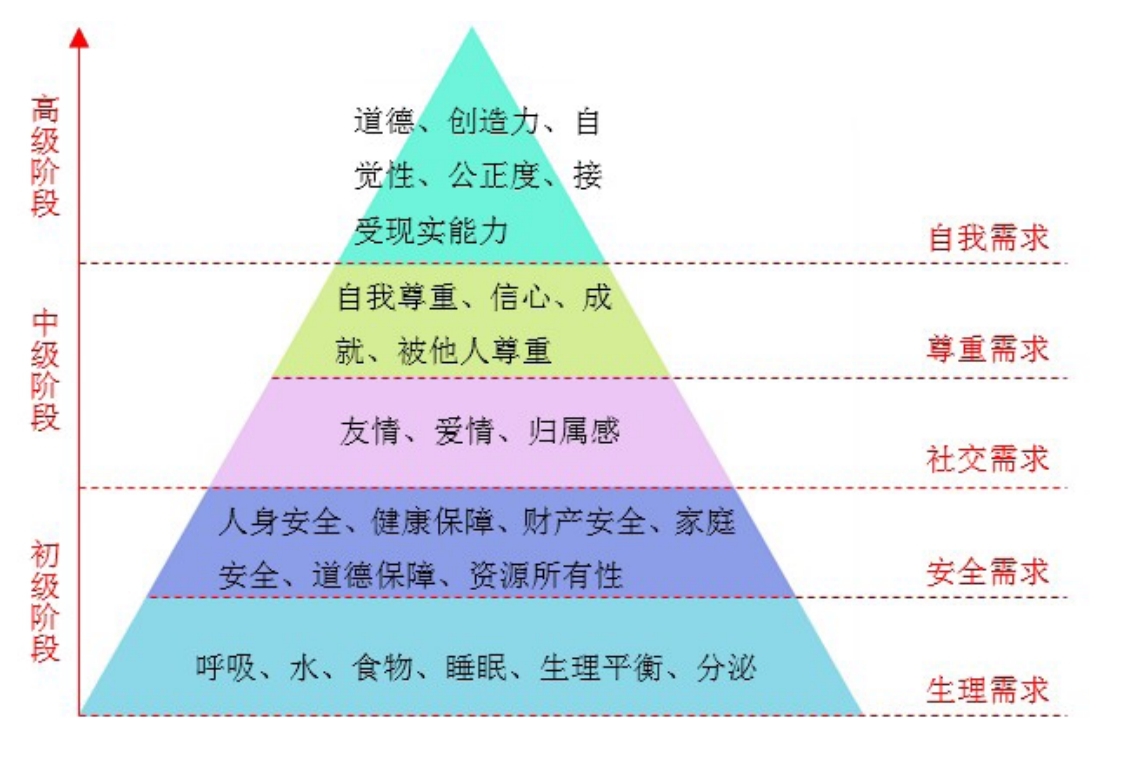 亚伯拉罕·哈罗德·马斯洛(Abraham Harold Maslow)于1943年初次提出了“需求层次”理论,他把人类纷繁复杂的需求分为生理需求、安全需求、友爱和归属的需求、尊重需求和自我实现的需求5个层次。