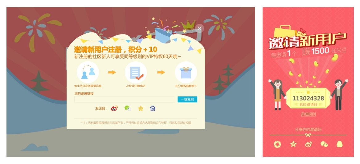 通过用户对网站的喜爱去传播给其他用户。这个过程中除了为网站拉来新用户外,这个老用户也会有一定活跃度在里面,因为通过激励去完成某些奖励之后,可以得到一些优惠或奖品。