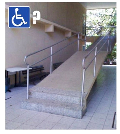 照片中的通道是为残障人士设计的吗?看样子好像是,又好像不是,让人匪夷所思。