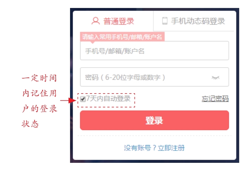 如果用户需要经常使用某个网站,而每次使用都需要登录操作会非常烦琐,很多网站会为用户登录添加几天内自动登录的功能,这样就是通过系统记住用户的登录状态,避免了用户在短时间内频繁的登录操作,非常实用、方便。