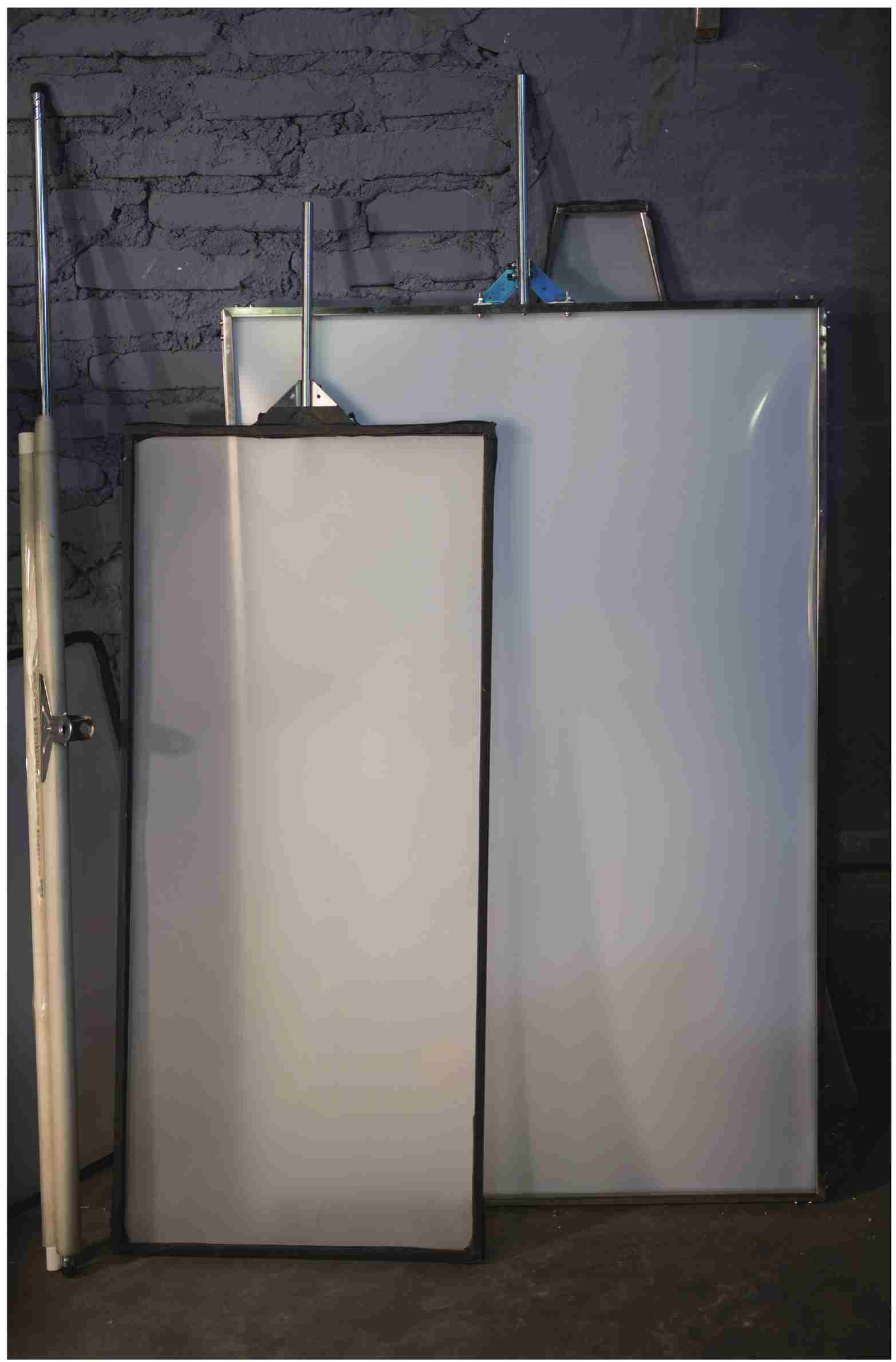 1.柔光屏以空心轻质不锈钢管焊接而成,最常用的尺寸是 80cm×120cm,不过也制作了很多更加窄长的或者更小的不同尺寸。