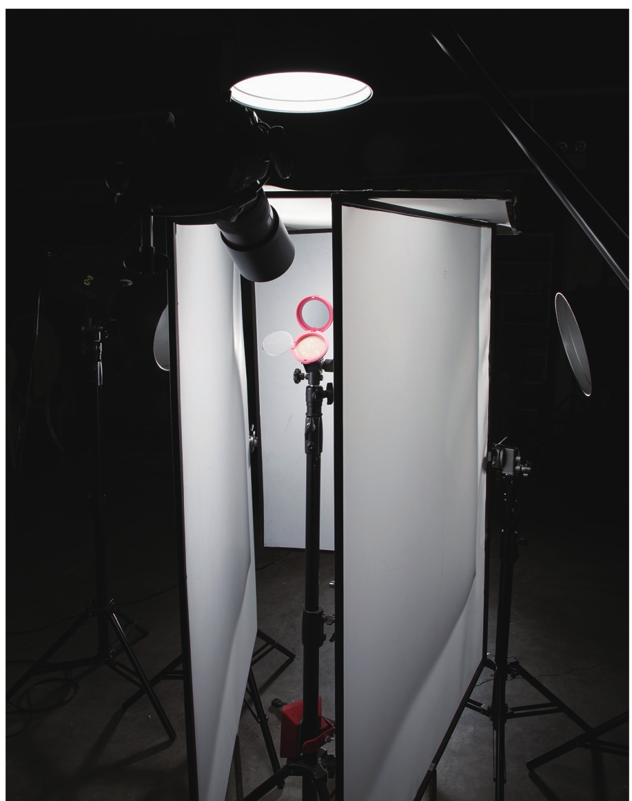 这一次,我们撤掉顶光,以左侧光为主要光线,打出彩色眼影的质感。