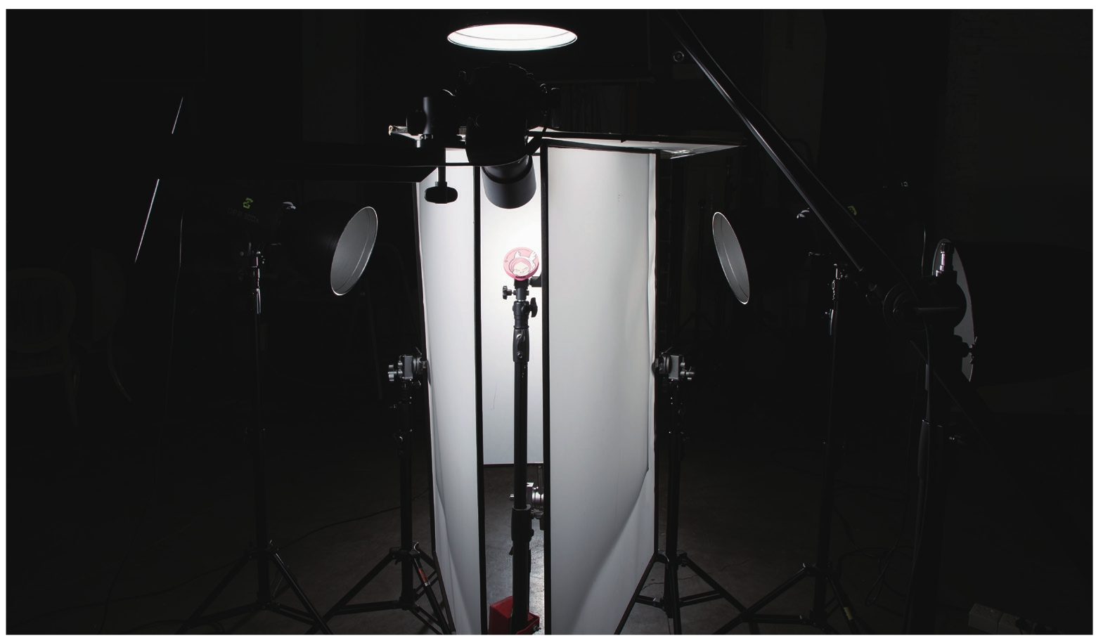 7.拍摄第二个镜头时,将产品打开,此时画面物品里的材质不一样了,这时不仅调整顶灯的位置,而且要调整侧灯的位置。