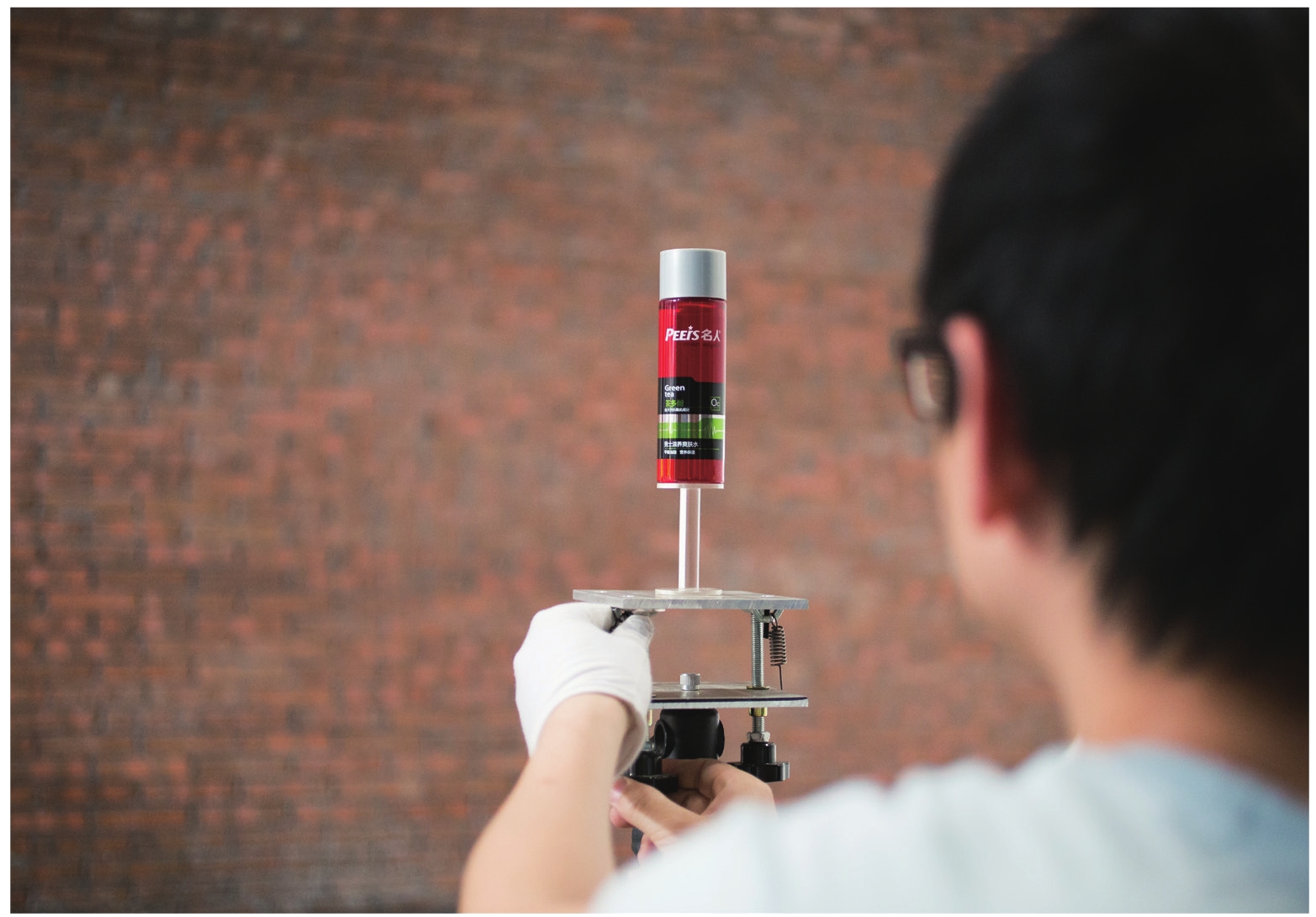 1.每种不同开关和材质的产品,选用的支撑台不一样。例如这只粉饼盒,我们只需要支撑其底部,使其悬空就可以了。