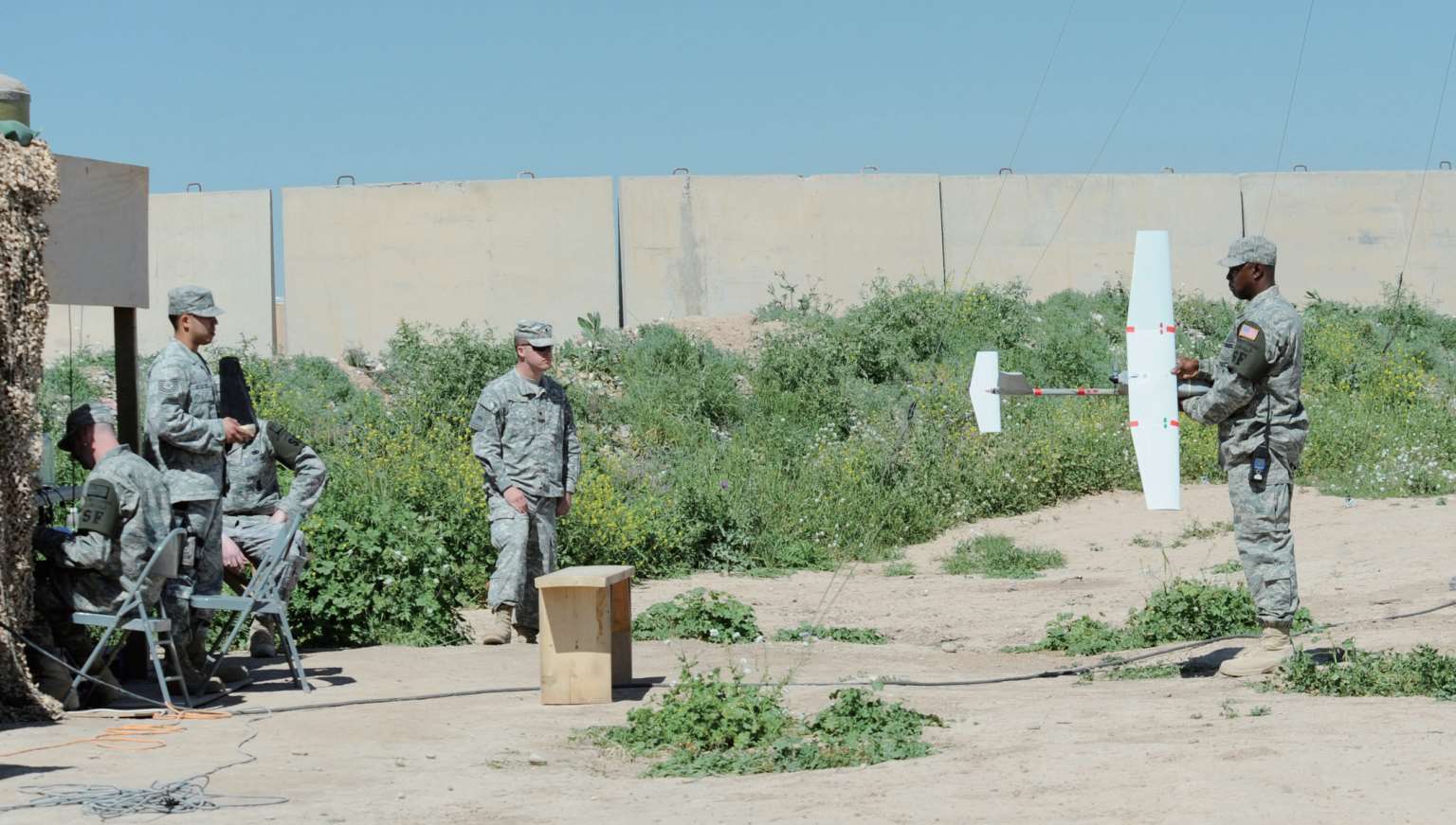 ▲士兵准备发射RQ-11无人机