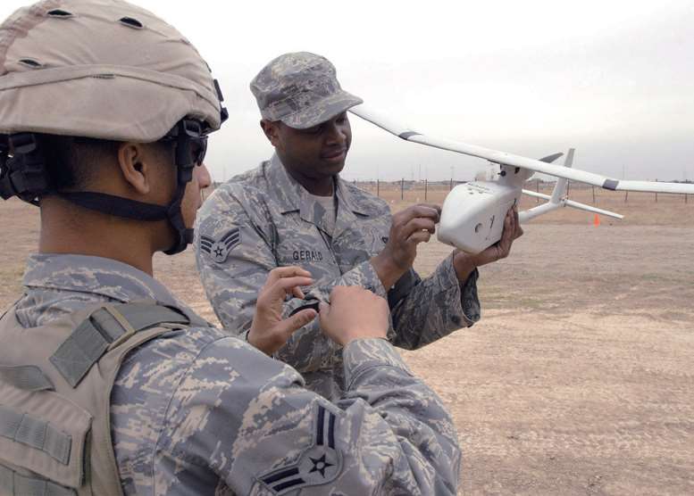 ▲美国士兵正在测试RQ-11无人机