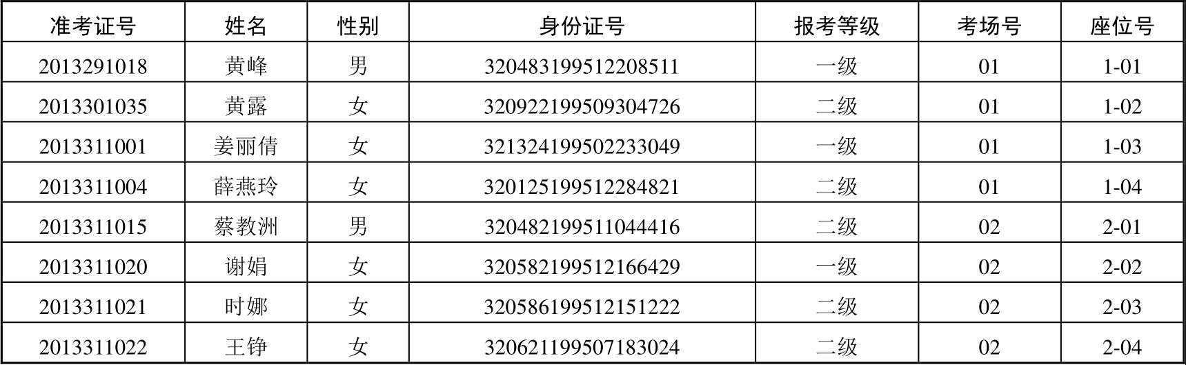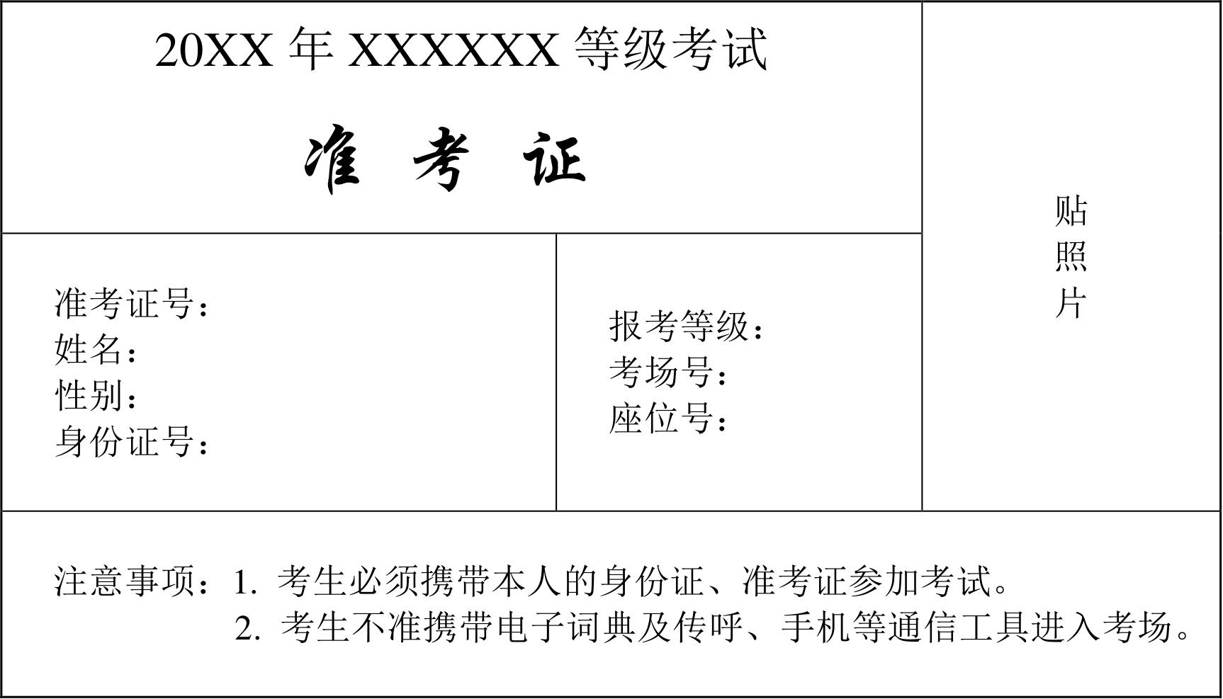 准考证如下: