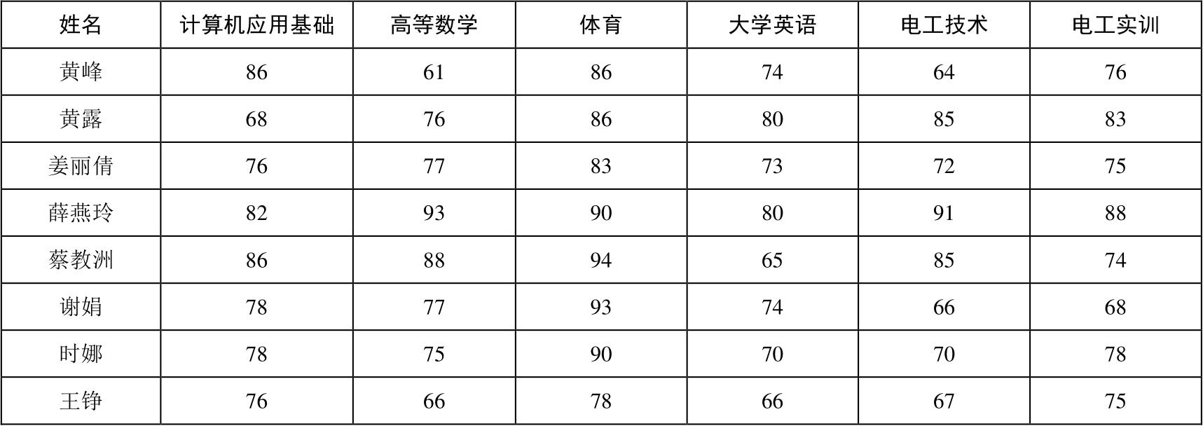 您的孩子本学期各门课程成绩如下: