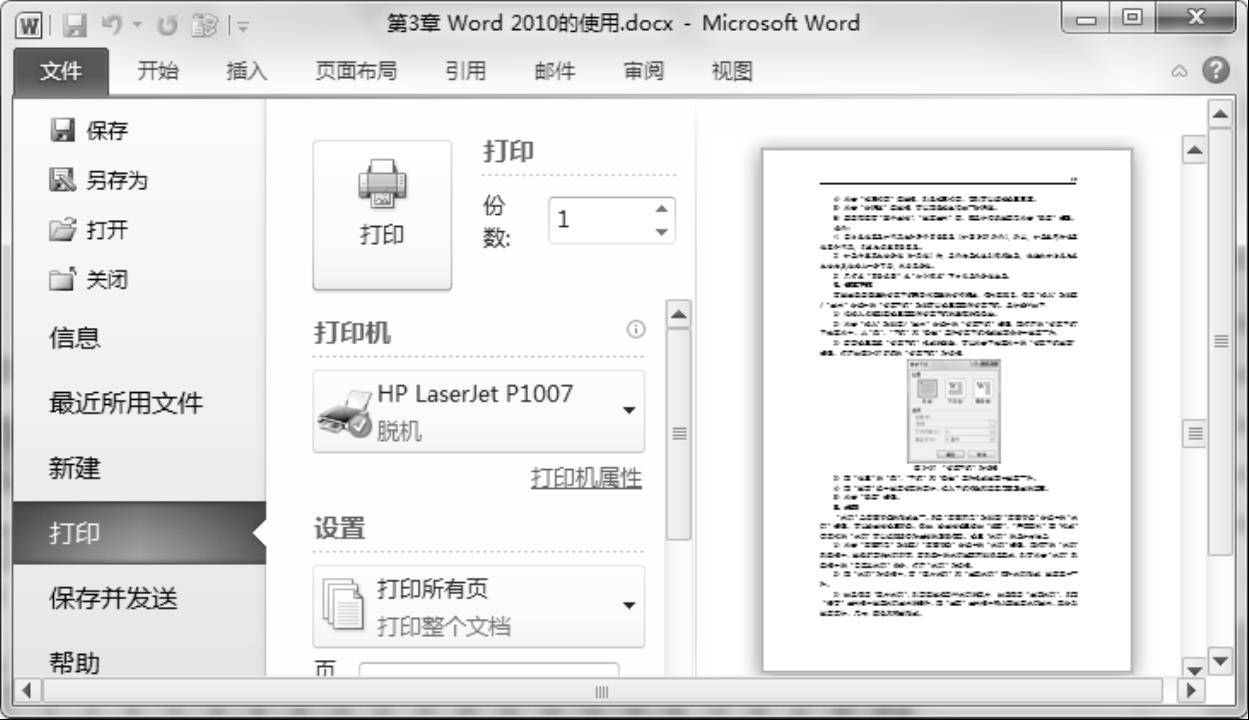 在Word 2010中,改进了文档的打印和预览功能,打印和预览在同一个窗口出现,使用起来更加简捷。