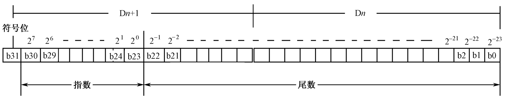 指数N:b23~b30位共8位。(b23~b30)=0或1;