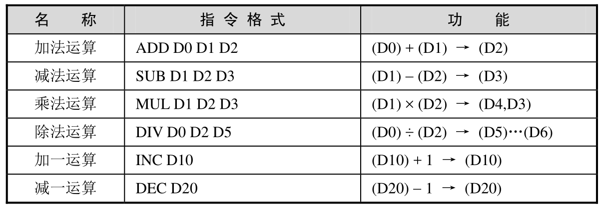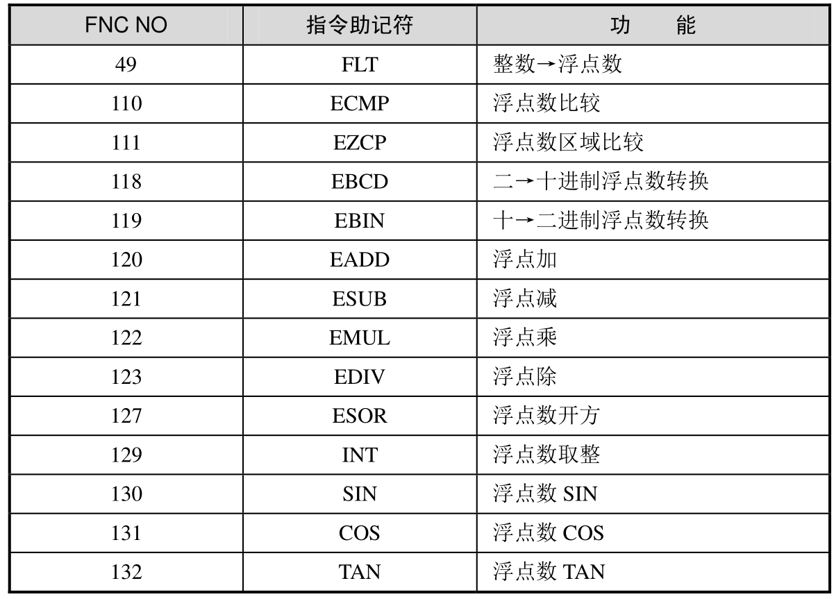 本节仅介绍其中有关浮点数四则运算的相关指令,其余指令可参看编程手册。