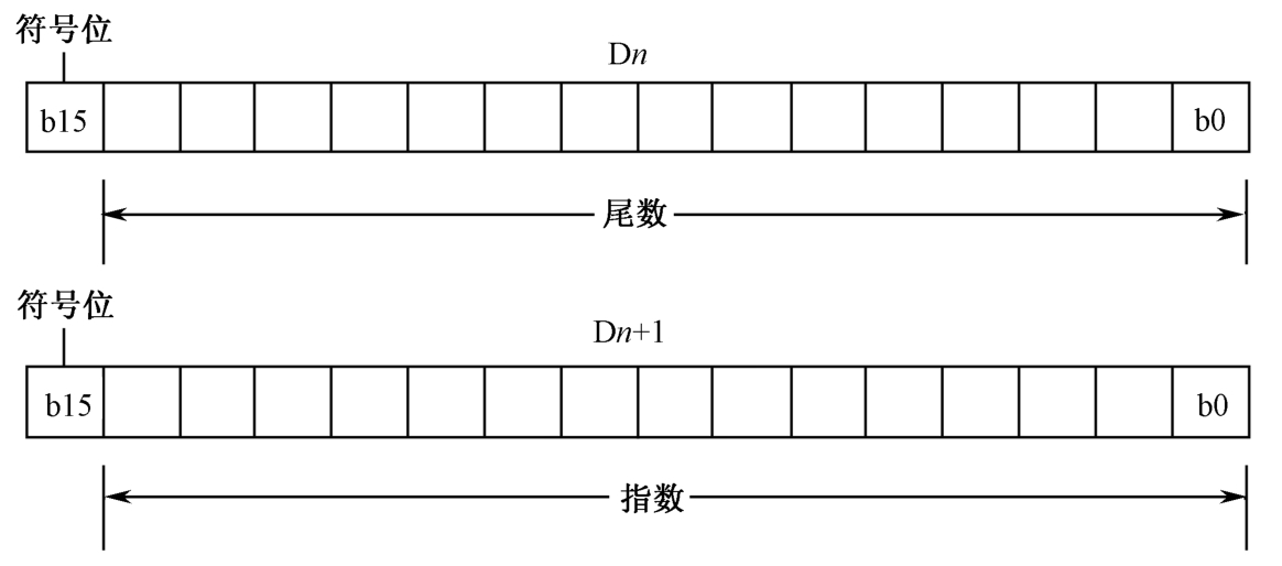 如图1-34所示,用两个连续编号的数据存储器D n 和D n +1来处理十进制浮点数,其中D n 存浮点数的尾数,D n +1存浮点数的指数。