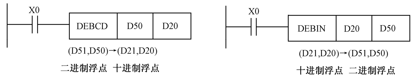浮点数功能指令中有 2条关于二进制浮点数和十进制浮点数转换指令,指令格式如图1-43所示。