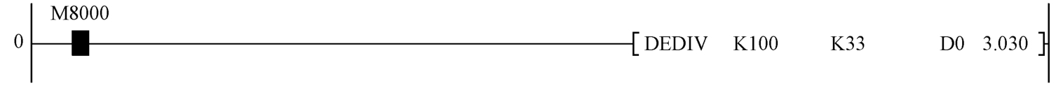 本例说明小数的输入方法。先将小数乘以 N 倍变成整数,然后将该整数转换成小数,再用浮点除法指令除以 N 倍即为输入小数,如图1-41所示。