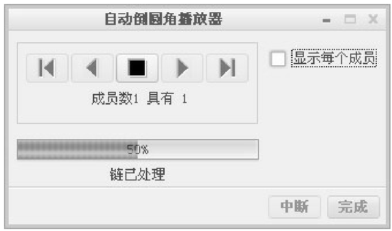 ,系统自动弹出图 3.8.8 所示的“自动倒圆角播放器”窗口,完成“自动倒圆角”特征的创建。