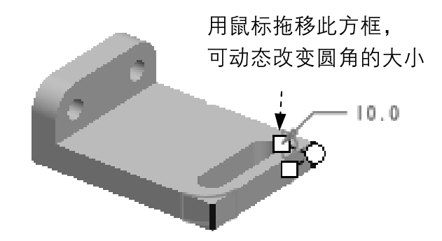 在操控板中,输入圆角半径值10.0,按Enter键,然后单击“确定”按钮