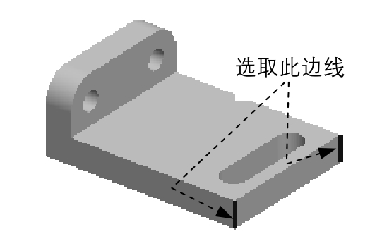 选取圆角的放置参考。在模型上选取图3.8.5所示的两条边线,操作方法为:先选取一条边线,然后按住键盘上的Ctrl键,再选取另一条边线。