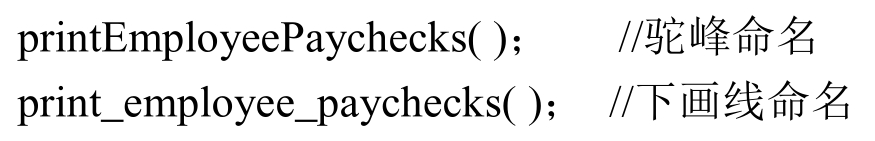 第一个函数名使用了骆驼式命名法——函数名中的每一个逻辑断点都有一个大写字母来标记;第二个函数名使用了下画线法——函数名中的每一个逻辑断点都有一个下画线来标记。