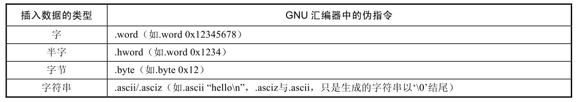 对于大多数汇编工具来说,一个典型的特性是可以在程序中插入数据。GNU汇编器语法可以写成