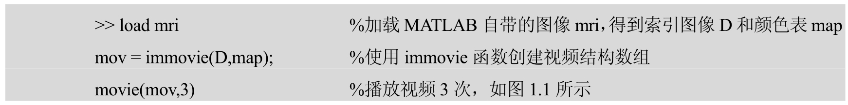 【实例】 加载MATLAB自带图像mri得到索引图像和颜色表,根据索引图像和颜色表创建视频,并播放3次。