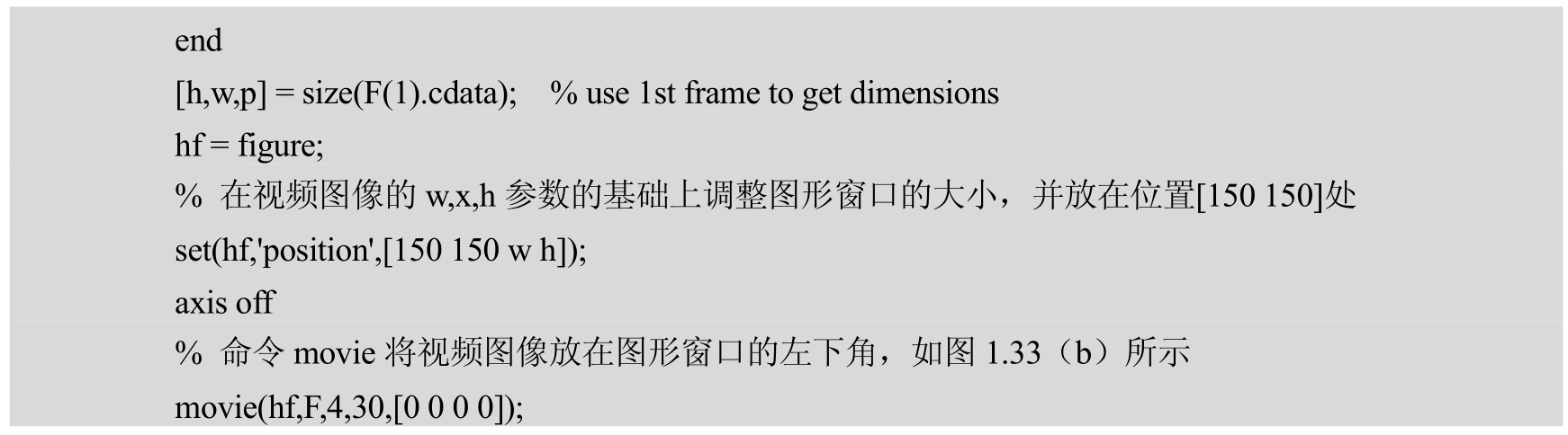 图1.32 播放视频,调用movie函数设置图形框