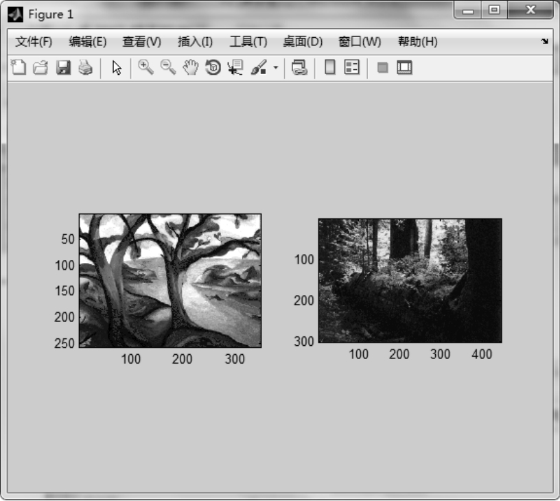 图1.10 在同一个图形窗口中显示两幅图像