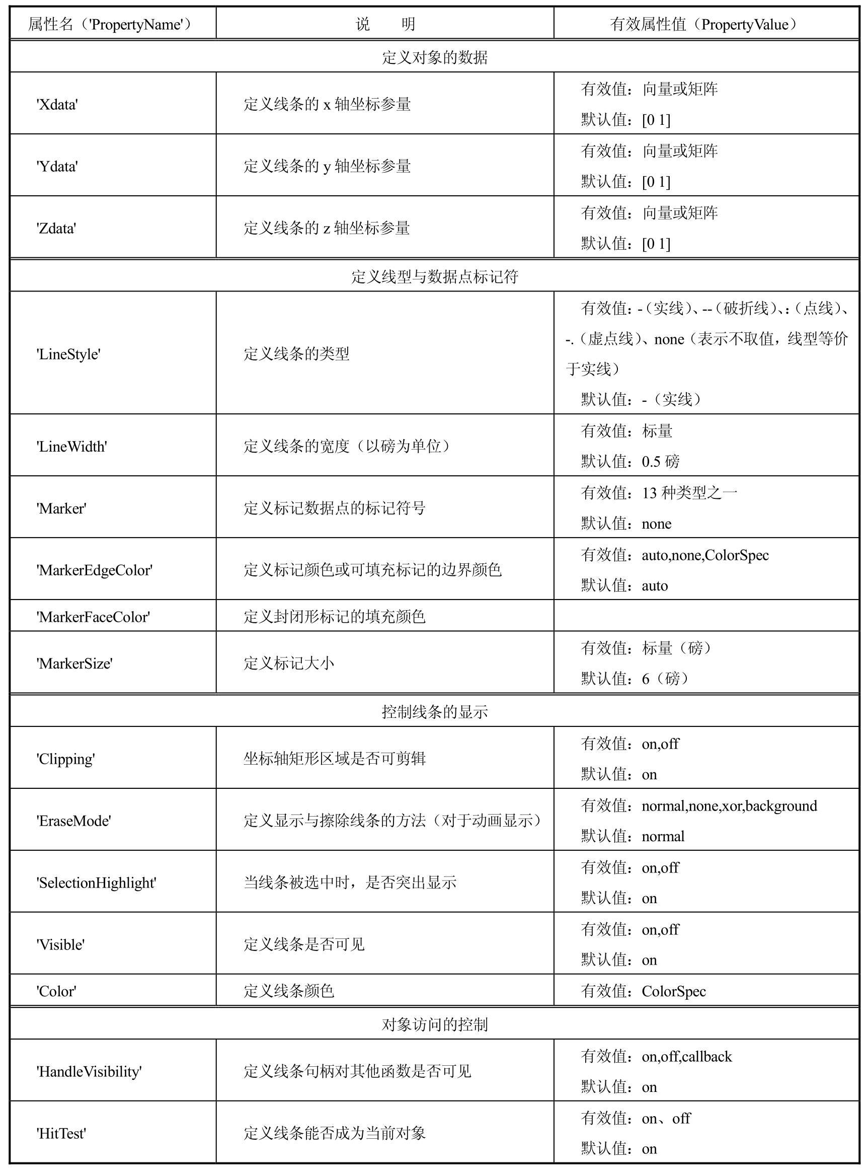 表1.5 line函数PropertyName和PropertyValue参数意义