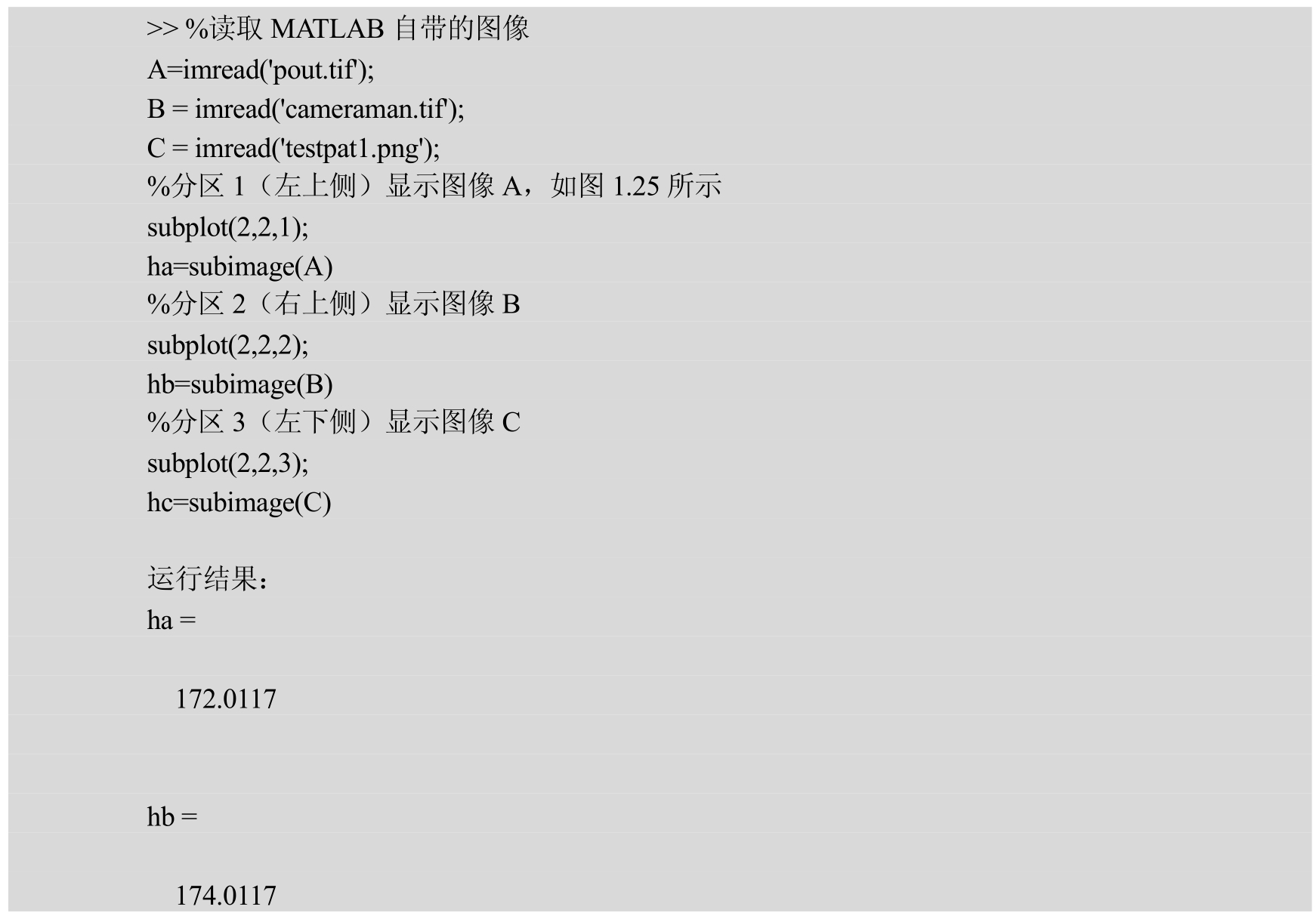 1.1.7 subimage——在图形窗口或窗口的分区中显示图像